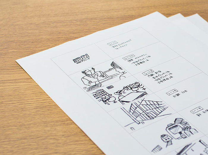 動画制作で工夫したポイントは2つあります。ひとつは、「人」を重視したコンテンツプロデュース。働く社員の方々のリアルな姿を映像に落とし込むため、あえてプロのキャストは活用せず、現場の社員の方々に協力していただきました。その分、事前のシナリオ設計は入念に行い、映像監督のディレクションのもと、絵コンテも用意して完成イメージを細部まで作り込みました。
