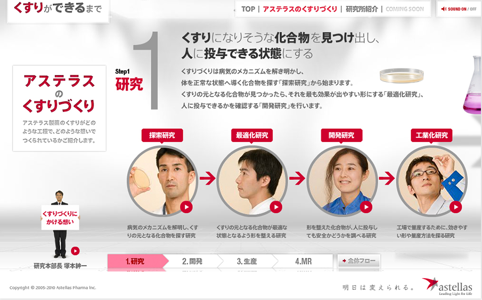 アステラス製薬のくすりづくりを社員の声とともにお伝えします。