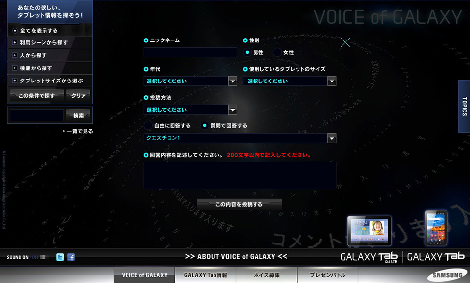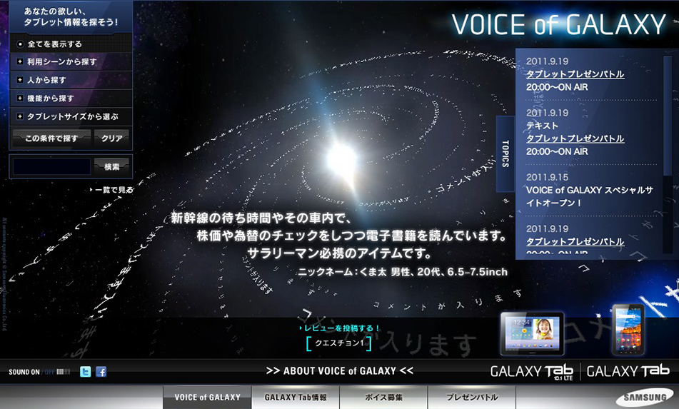 タブレット利用者の声を集めてビジュアライズするキャンペーンサイト。