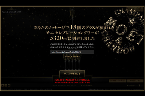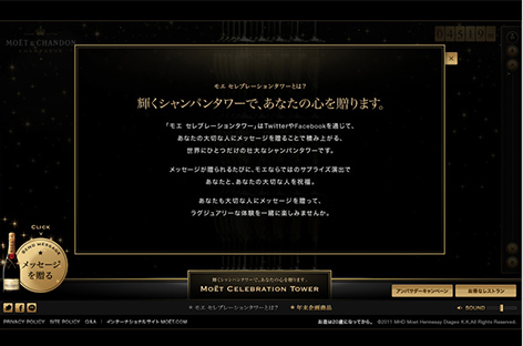 壮大なシャンパンタワーを積み上げることができるスペシャルサイトです。
