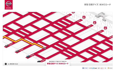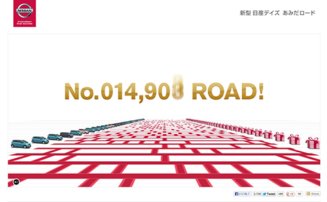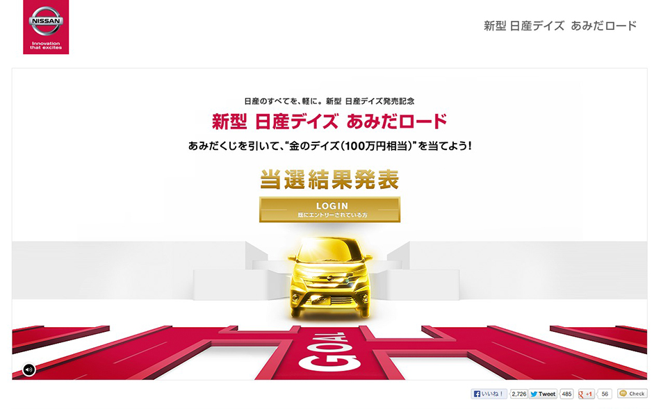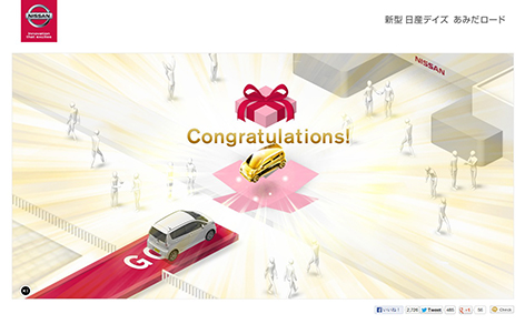 日産デイズ 発売を記念して公開した、日産デイズをモチーフとした100万円相当の純金製ミニカーが当たる「新型 日産デイズ あみだロードキャンペーン」。