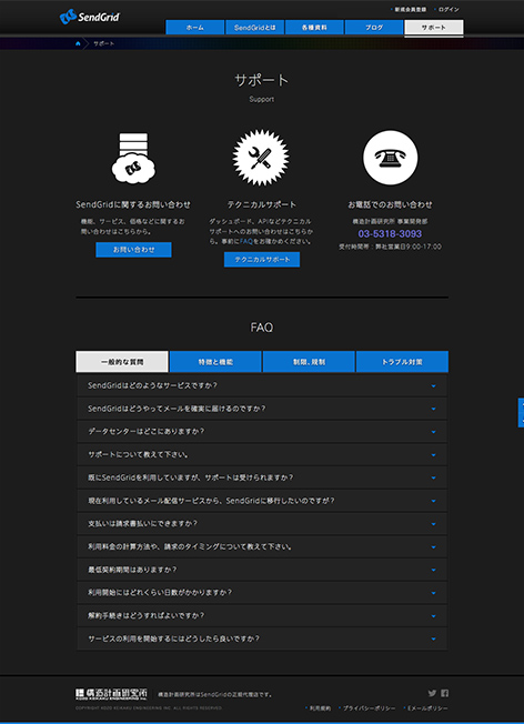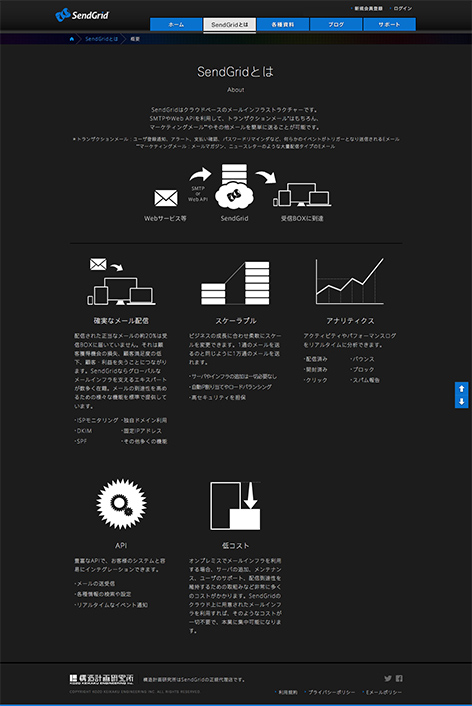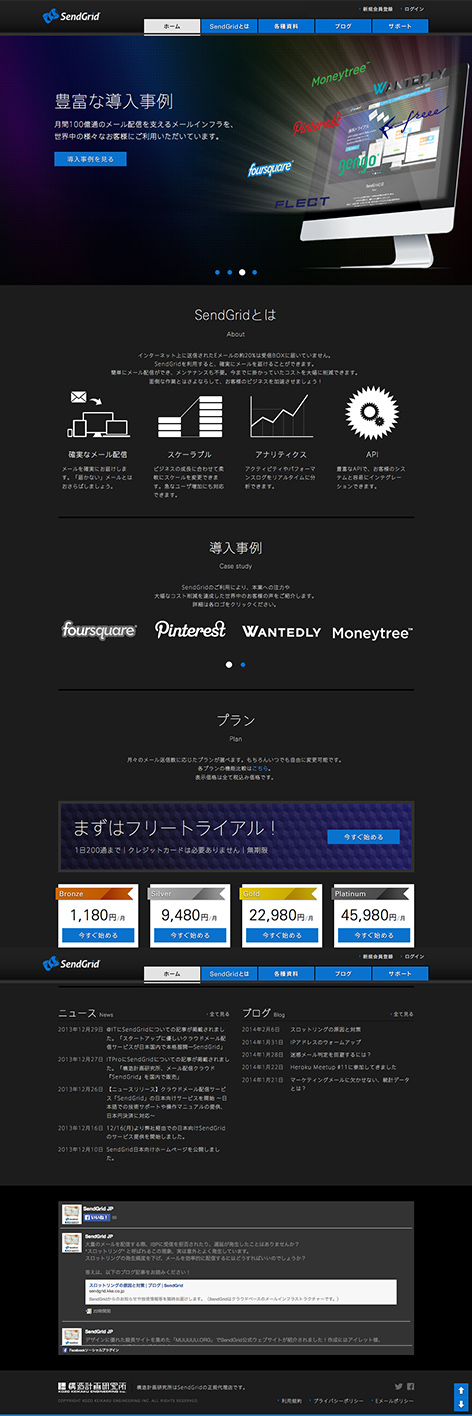 SendGridのサービス紹介からユーザー登録、ブログなどWebサイト一式の制作を行いました。