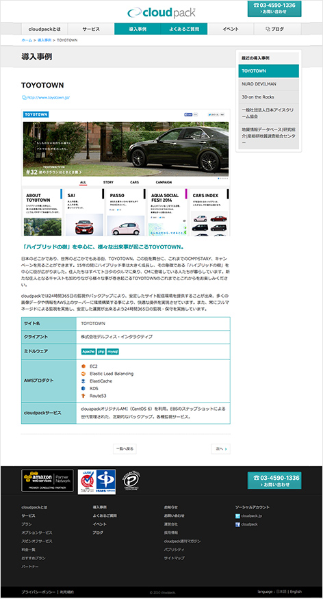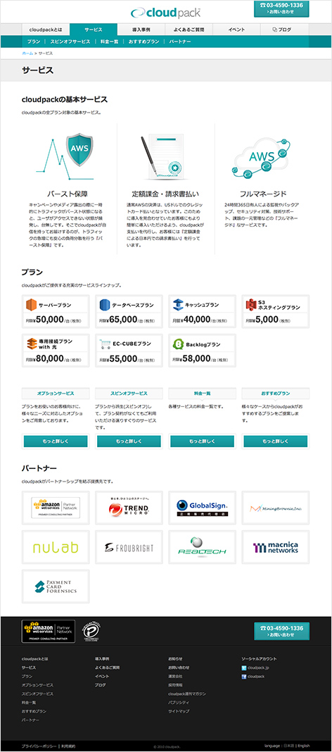 Amazon Web Services(AWS)の導入設計から運用・保守をサポートしている、cloudpackオフィシャルサイトを制作しました。
