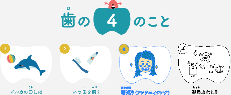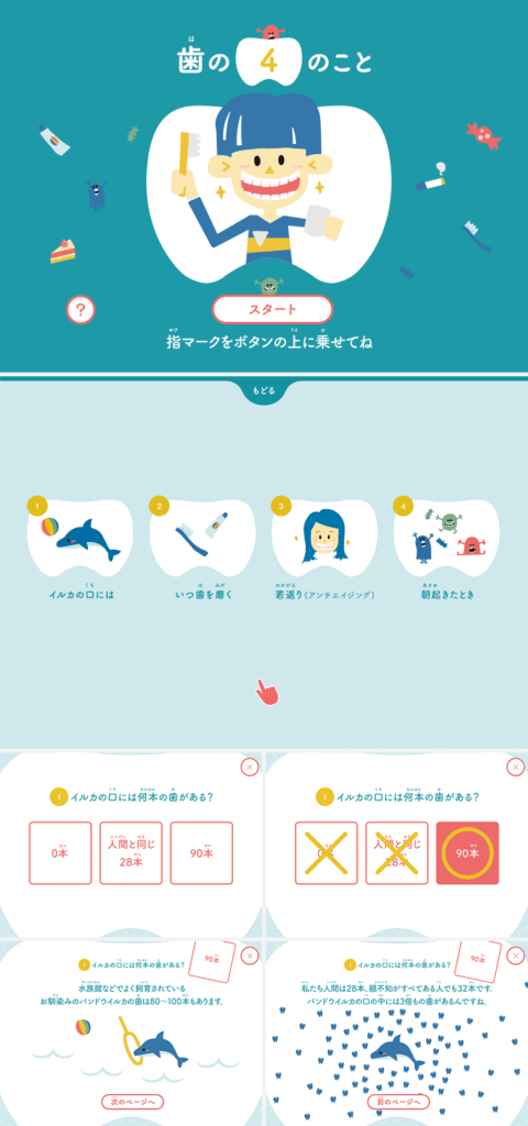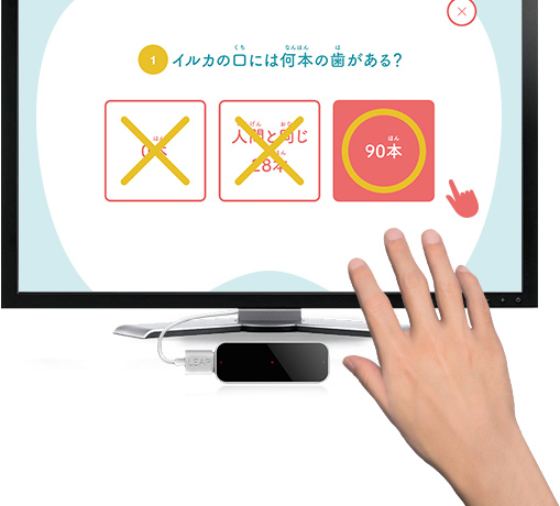 リープモーションを利用して、体を動かし楽しみながら学ぶことのできる歯にまつわる体感型クイズです。