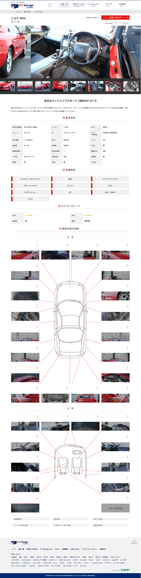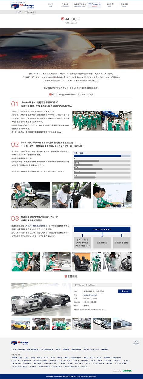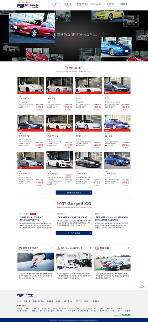 中古車のガリバーが展開する、国産スポーツカーの中古車専門店「GT-Garage」のWebサイトを制作しました。
