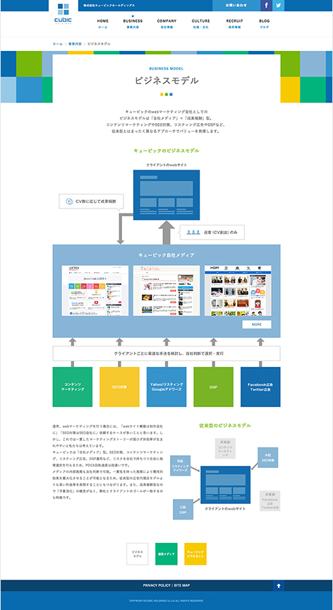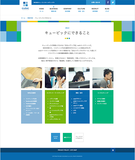 Webマーケティング会社のキュービックホールディングスのWebサイトをリニューアルしました。