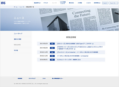 ヒロセ電機のコーポレートサイトとグローバル展開する各地域のWebサイトをリニューアルしました。