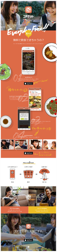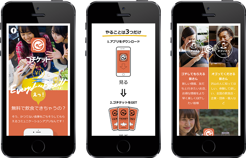 食事を無料でごちそうしてもらえるコミュニケーションアプリ「ゴチケット」のWebサイトを制作しました。
