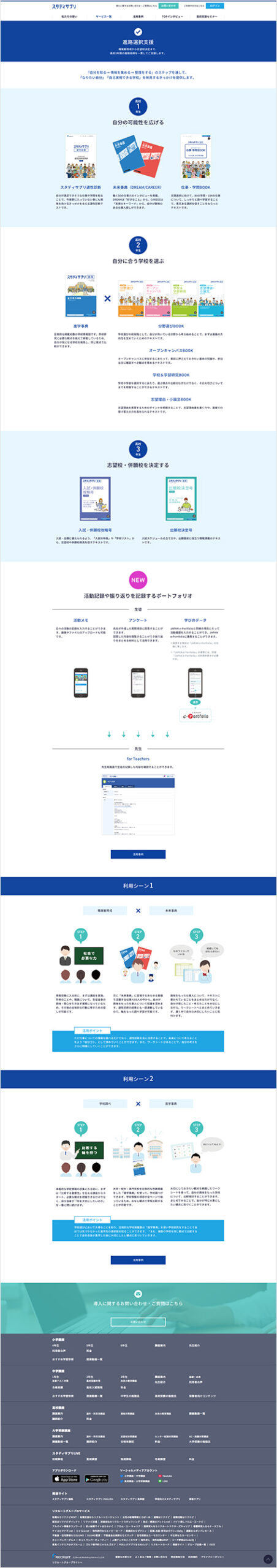進路選択支援サービス、学習支援サービスにより、生徒一人ひとりが主体的に学ぶきっかけづくりを支援するサービスの紹介や