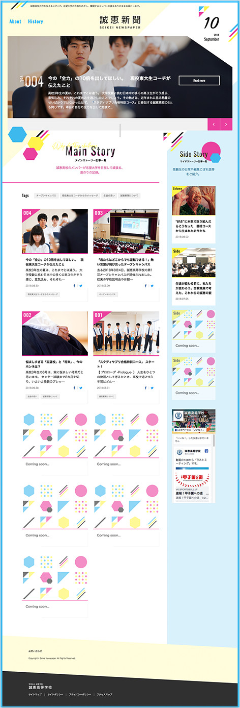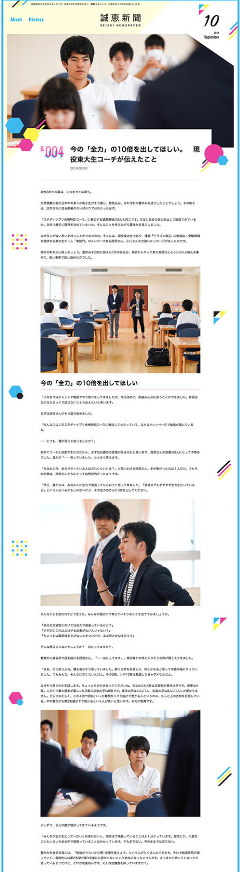 誠恵高等学校の今を伝えるメディアサイト「誠恵新聞」の企画・コンテンツ制作・Webサイト制作を担当しました。