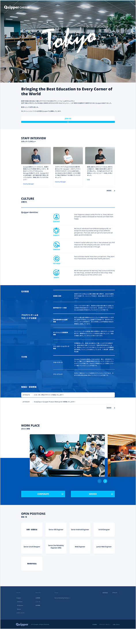 オンライン学習サービスを提供するQuipper Limited社のコーポレートサイト(日/英)および採用サイトをリニューアルいたしました。