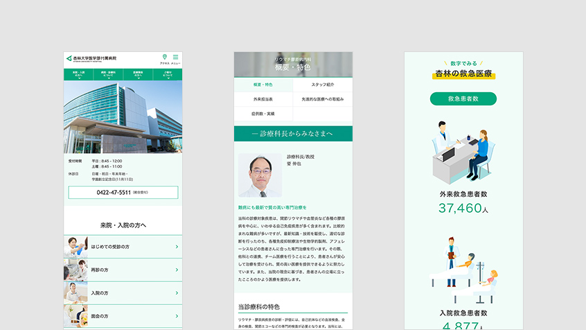 多摩地域唯一の大学医学部付属病院の本院である杏林大学医学部付属病院のウェブサイトをリニューアルしました。