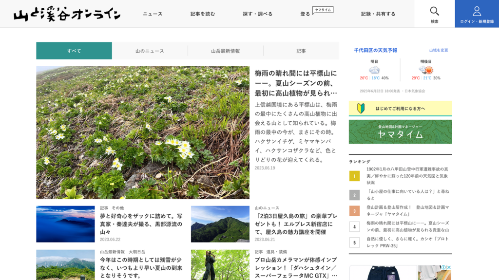 yamakei online 山と溪谷社 メディアサイト