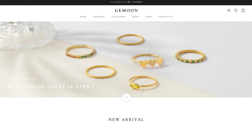 良質な天然ダイヤモンドを使用したファッションジュエリーを展開するGEMOON(ジェムーン)公式オンラインストア。テーマベースで構築費用を抑えながら、高級感とブランドイメージが伝わる写真で魅せるサイトになっています。