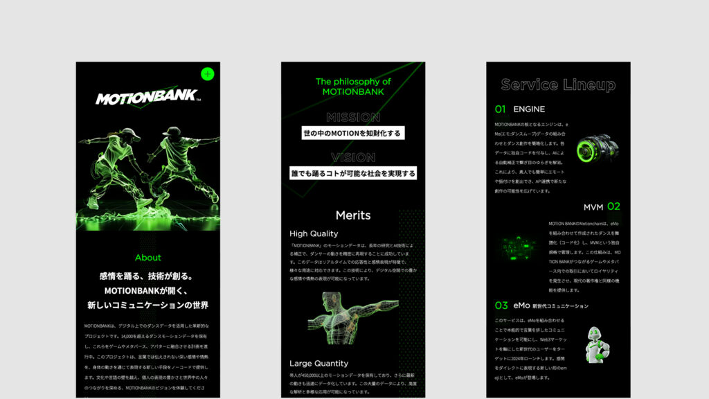 アノマリー様の手がける新サービス「MOTION BANK」のサイト立ち上げに際し、LP(ランディングページ)の制作を担当しました。