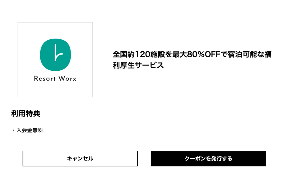 ②「利用特典」をご確認いただき、右下のボタンでクーポンを発行してください。